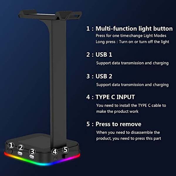 Lighting & Touch Control: The headphone charging stand features 10 kinds of lighting modes, specially the multi-color flowing and single-color breathing mode, create a fantastic gaming atmosphere. which can be changed by touching button, You can enjoy different light modes in different scenes.